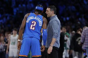 体育资讯3月24日讯 雷霆客场挑战76人,上半场65-43领先。